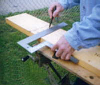 Press against tread to transfer lines to nearside for nailing |